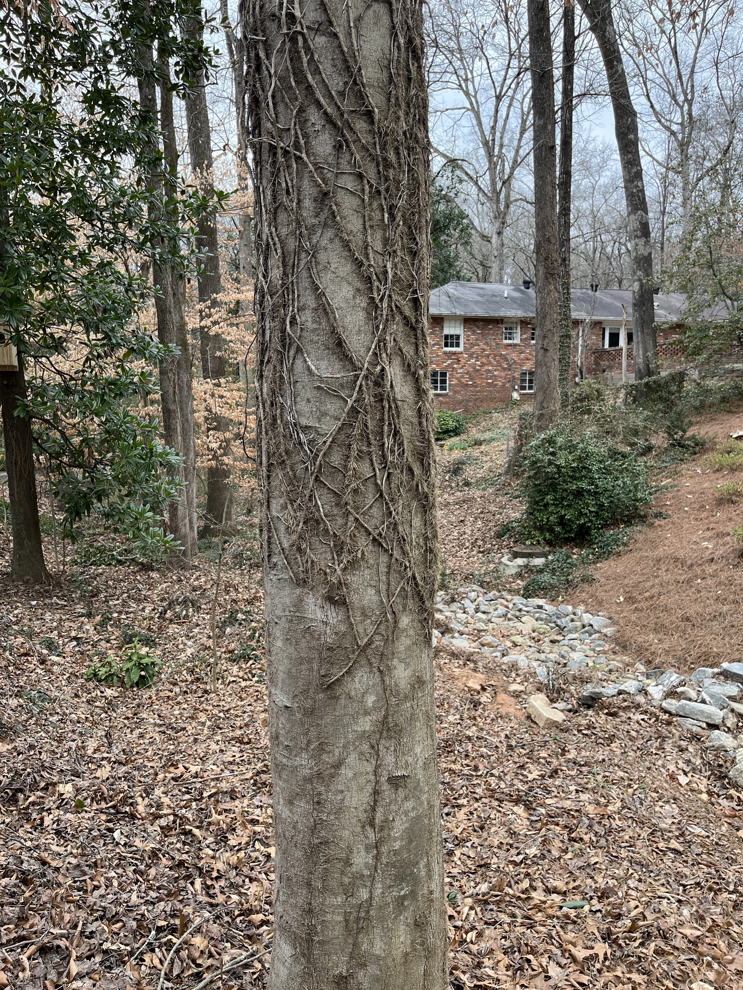 If the vines at the base of your trees are too big to pull up, it may be more efficient to apply herbicide to the cut stumps of the vines to kill them and prevent them from re-sprouting. You can find “stump killer” herbicides at any local hardware store or big box home improvement store. Be sure to thoroughly read and closely follow the herbicide label for the sake of efficacy and the safety of the applicator.